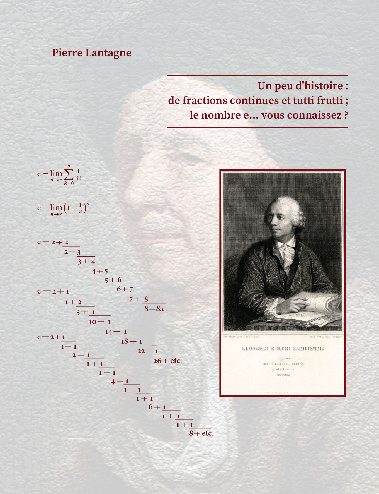 - Un peu d'histoire: de fractions continues et tutti frutti; le nombre e… vous connaissez ?